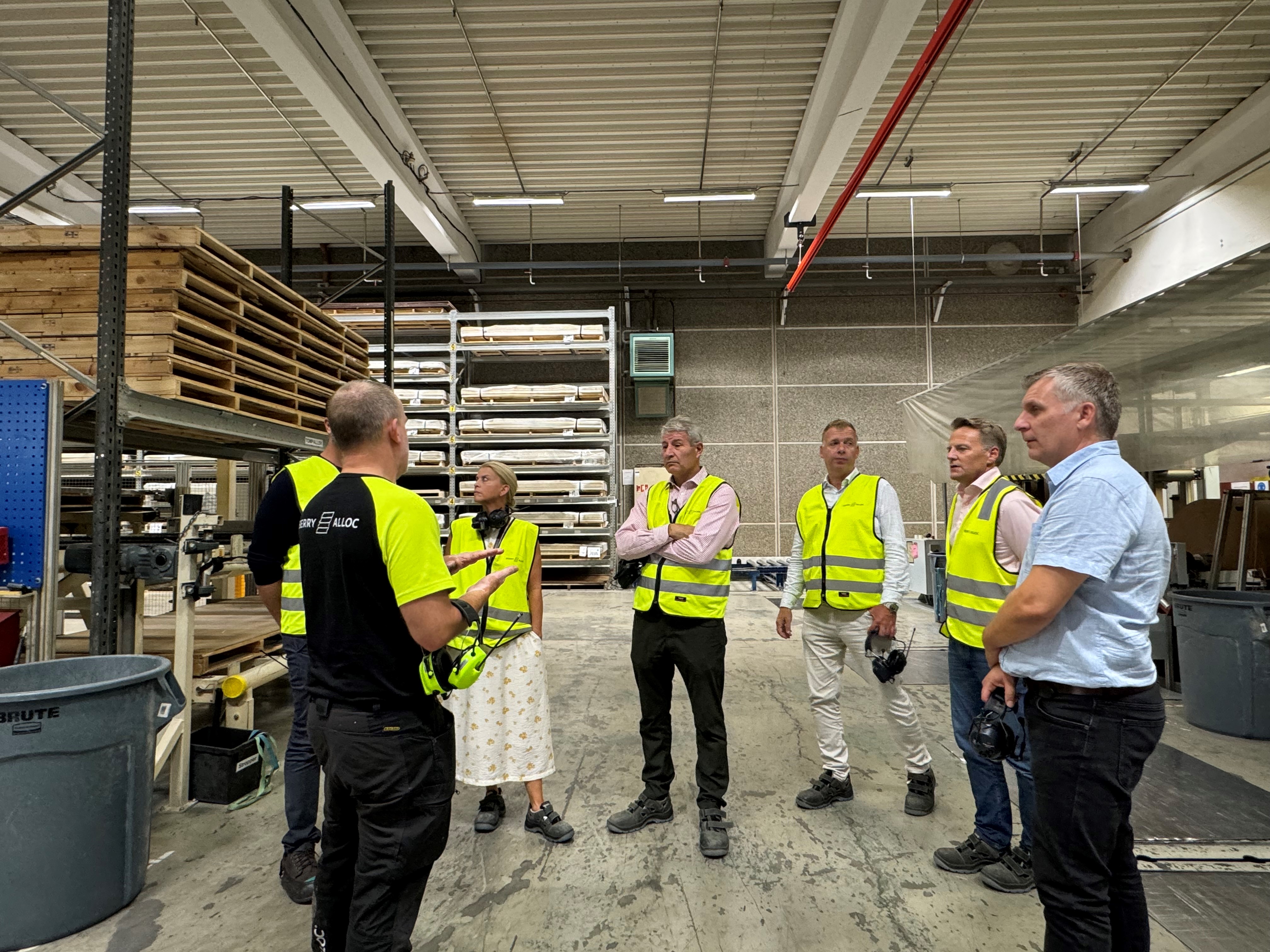 13.09.2024 Byggevareindustrien på besøk hos Berry Alloc I forbindelse med strategisamling for styret i Byggevareindustriens Forening, besøkte vi nylig Berry Alloc i Lyngdal. Der fikk vi en grundig omvisning i produksjonsfasilitetene, bl.a. fikk vi se den nye produksjonslinjen som nylig er satt i drift.