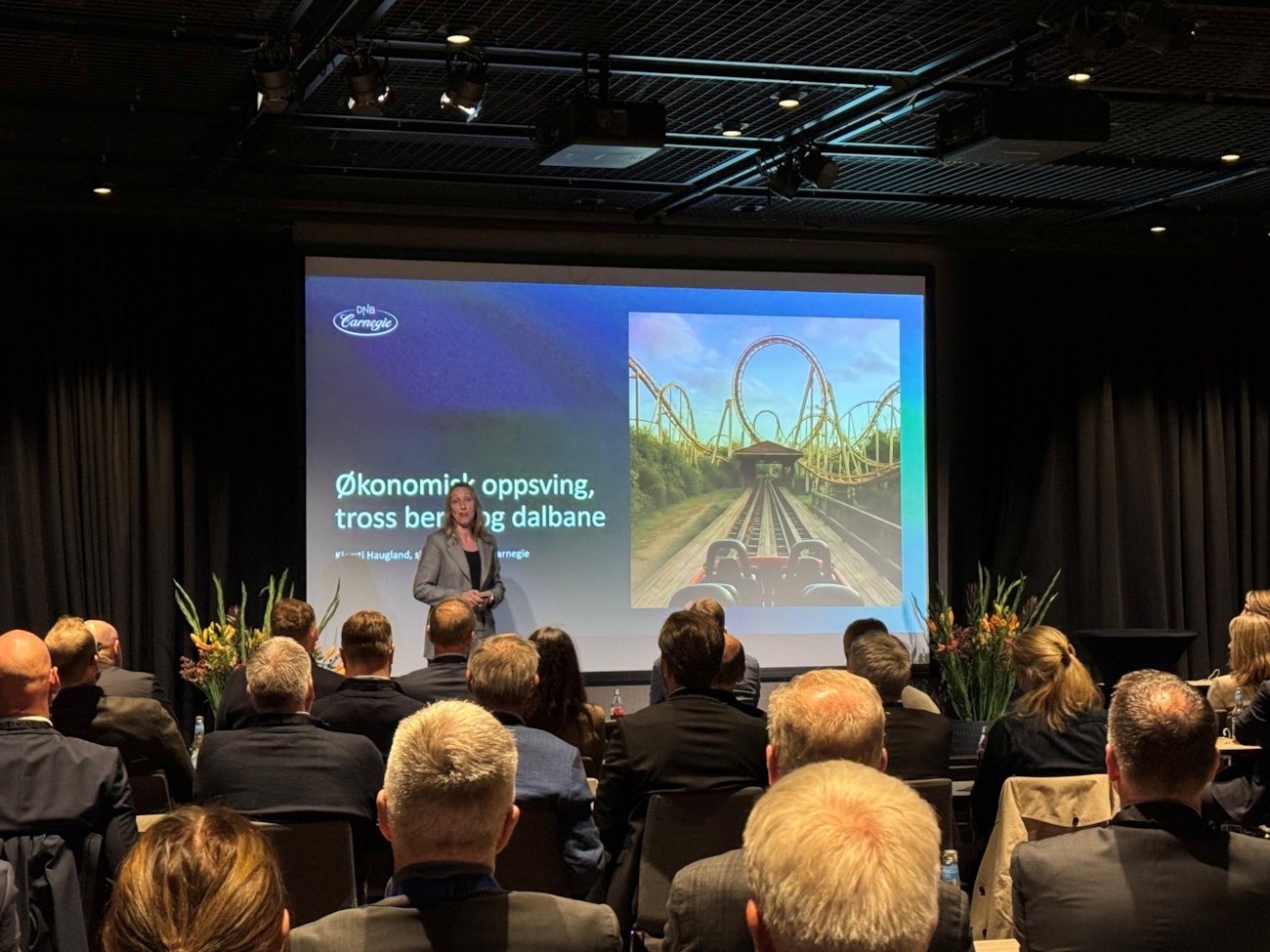 I plenum på ettermiddagen rettet foredragsholderne søkelyset mot et krevende marked. DNB Markets’ Kjersti Haugland ga en oppdatert vurdering av makroøkonomien, renteutviklingen og forventningene for 2026.